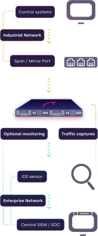 Waterfall for Intrusion Detection Systems (IDS) enables IT networks to safely monitor OT systems to detect intrusion attempts by preventing the risk of anything going back into the OT networks via the IDS.